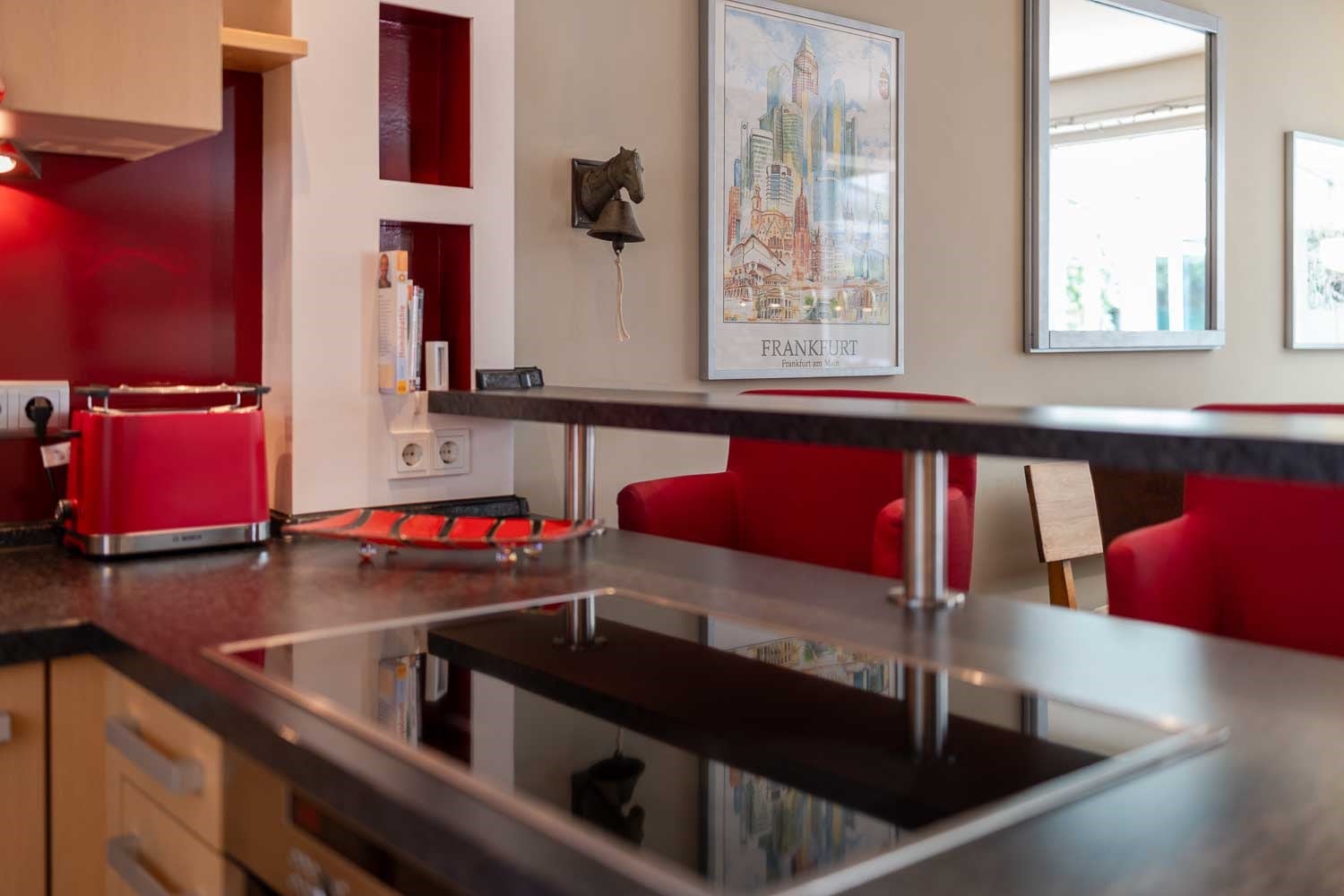 Bushaltestelle Alt-Niederursel – 300m entfernt • U-Bahn-Linie U1 fußläufig 2-3 Minuten mit direkter Verbindung in die Innenstadt, U3, U8, U9 in der Nähe • S-Bahn-Anschluss nach Bad Homburg und Oberursel • Autobahnanschluss A5 – 3km entfernt • Gute Anbindung an das gesamte RMV-Netz