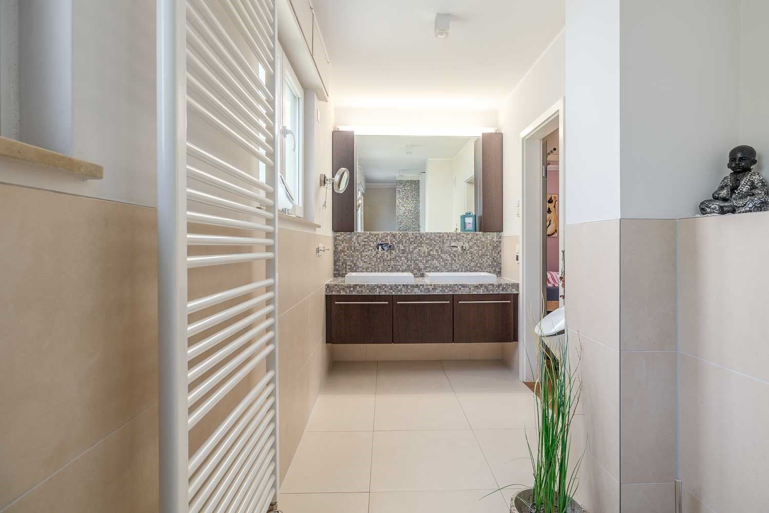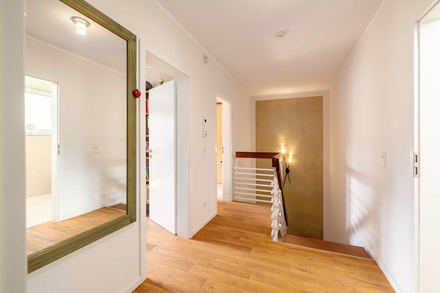 Obergeschoss – die Schlafetage: Soo0 gemütlich! Das Elternschlafzimmer hat sogar einen eigener Loggia – morgens aufwachen und direkt ins Grüne schauen, herrlich! Die beiden Kinderzimmer sind perfekt für Nachwuchs oder als Büro/Gästezimmer. Und mein Vollbad ? Moderne Wellness pur!